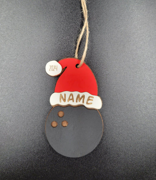 Bowling Sporty Santa Spirit: Personalized Sports Santa Hat Ornament