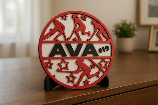Personalized Field Hockey Shelf Sitter - Custom Player Name & Number Gift