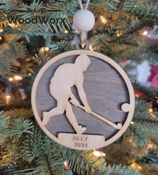 Personalized Field Hockey Round Wooden Tree Ornament – Handmade Keepsake Gift