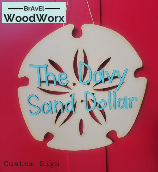 BrAvEl WoodWorx Custom Personalized Sand Dollar Wood Sign – Unique Coastal Décor