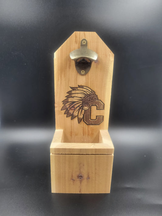 Custom Cedar Creations: Handcrafted Wall Mounted Bottle Opener – Your Design, Your Style!