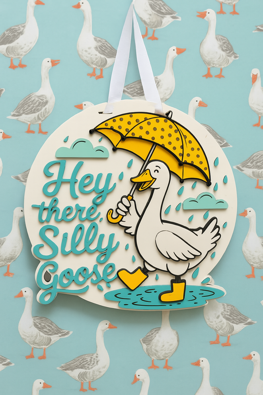 Hey There Silly Goose Door Hanger – Fun & Whimsical Front Door Decor – Seasonal Welcome Sign for Porch or Entryway