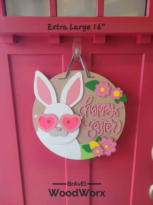 Happy Easter Bunny Door Hanger with Acrylic Sunglasses – Festive Spring Decor