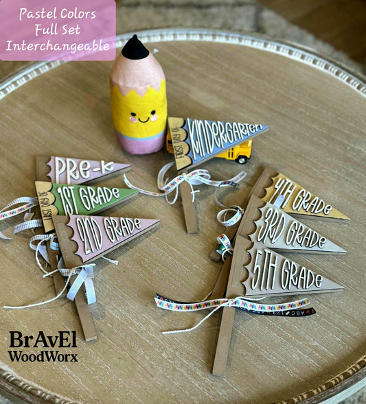 Back-to-School Pennant Sign Complete Set – Interchangeable First & Last Day Design, Two Color Scheme Options