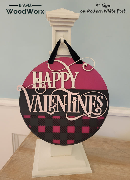 Heartfelt Plaid: Fuchsia Valentine Sign for Festive Charm Shelf Post Stand: Festive Seasonal Decor for Your Home