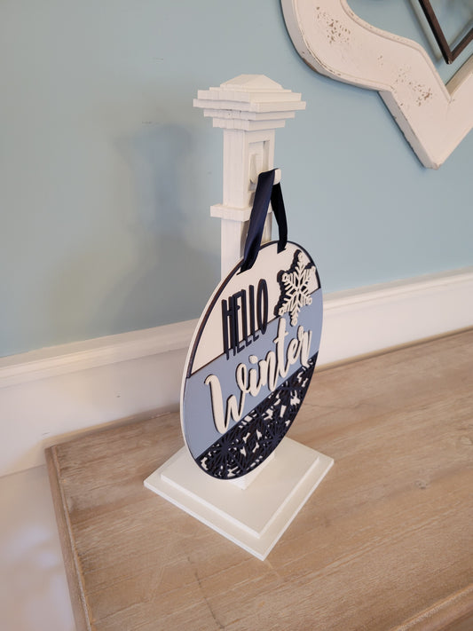 Hello Winter Snowflake Shelf Stand: Festive Seasonal Decor for Your Home