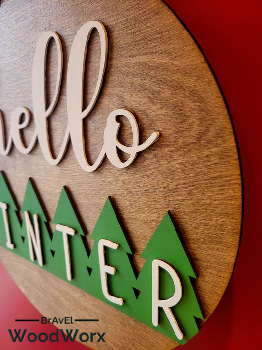Hello Winter Door Sign – Handcrafted Seasonal Wall Decor