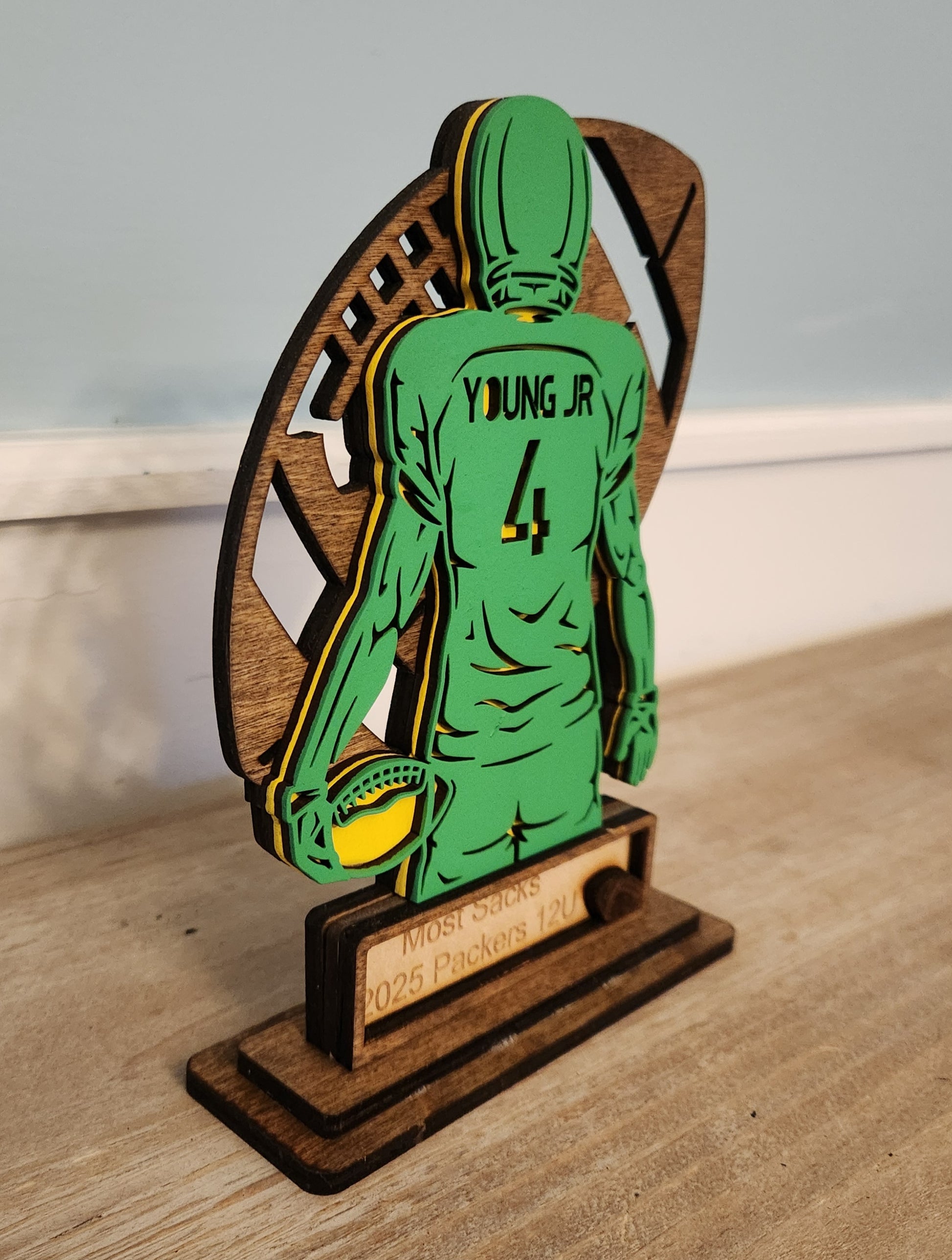 Honor your young athletes with this beautifully crafted custom football trophy - the perfect way to recognize dedication, teamwork, and outstanding performance on the field.