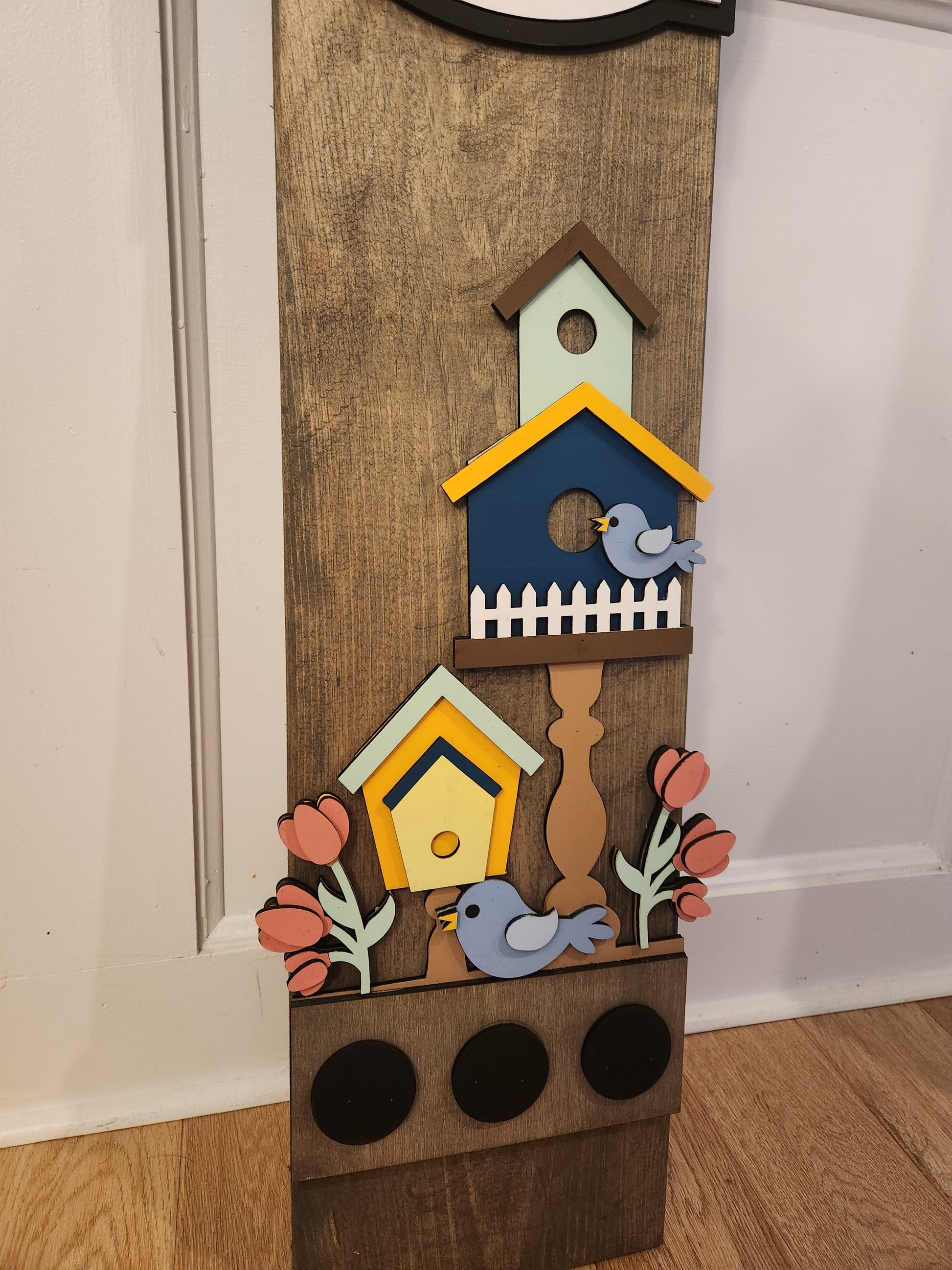 Interchangeable Spring Porch Leaner – “Home Tweet Home” Birdhouse & Nest Design | Rustic Handmade Front Porch Sign | Seasonal Insert