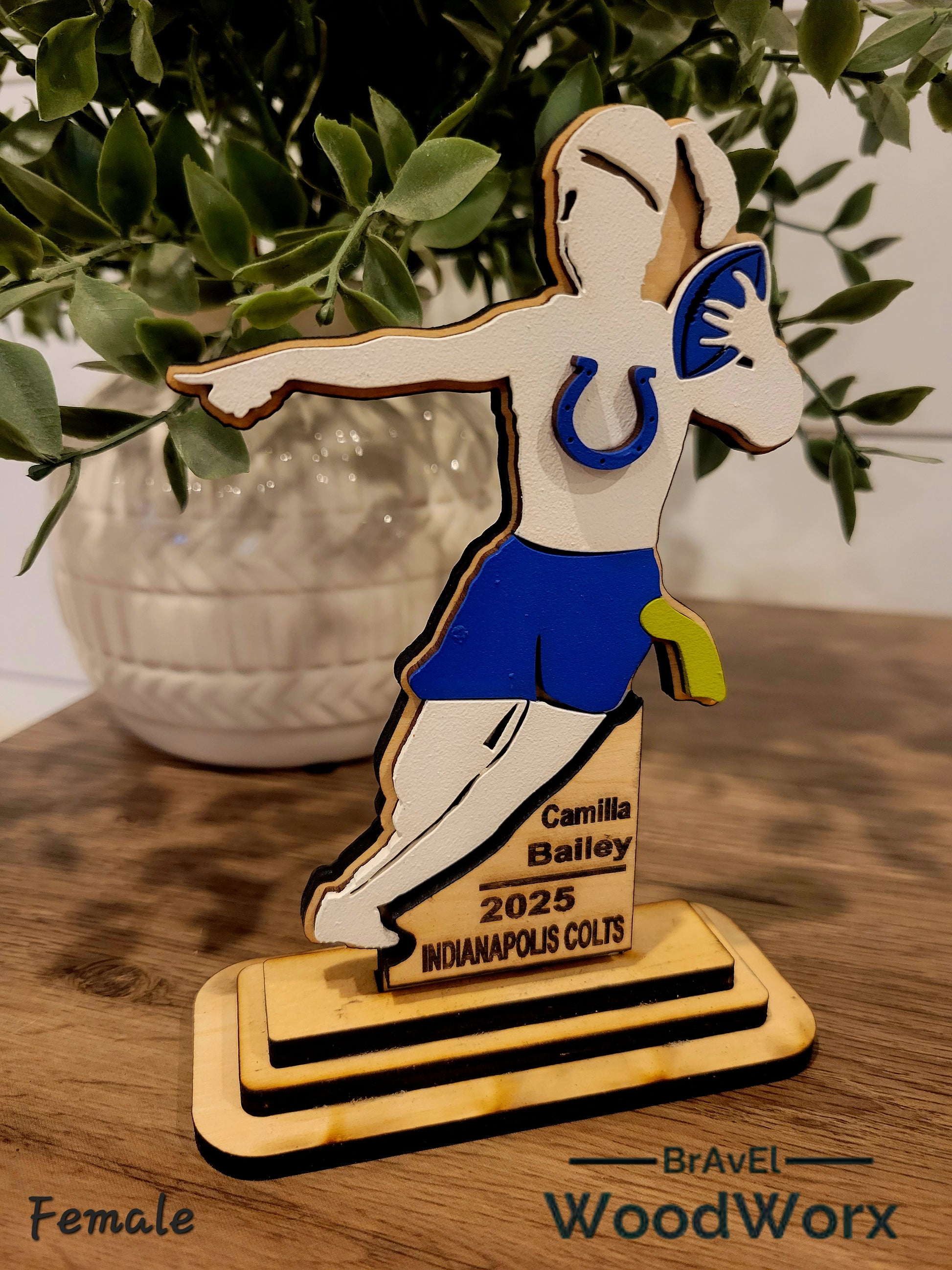Order now and give young athletes the recognition they deserve with this premium flag football trophy from BrAvEl WoodWorx.