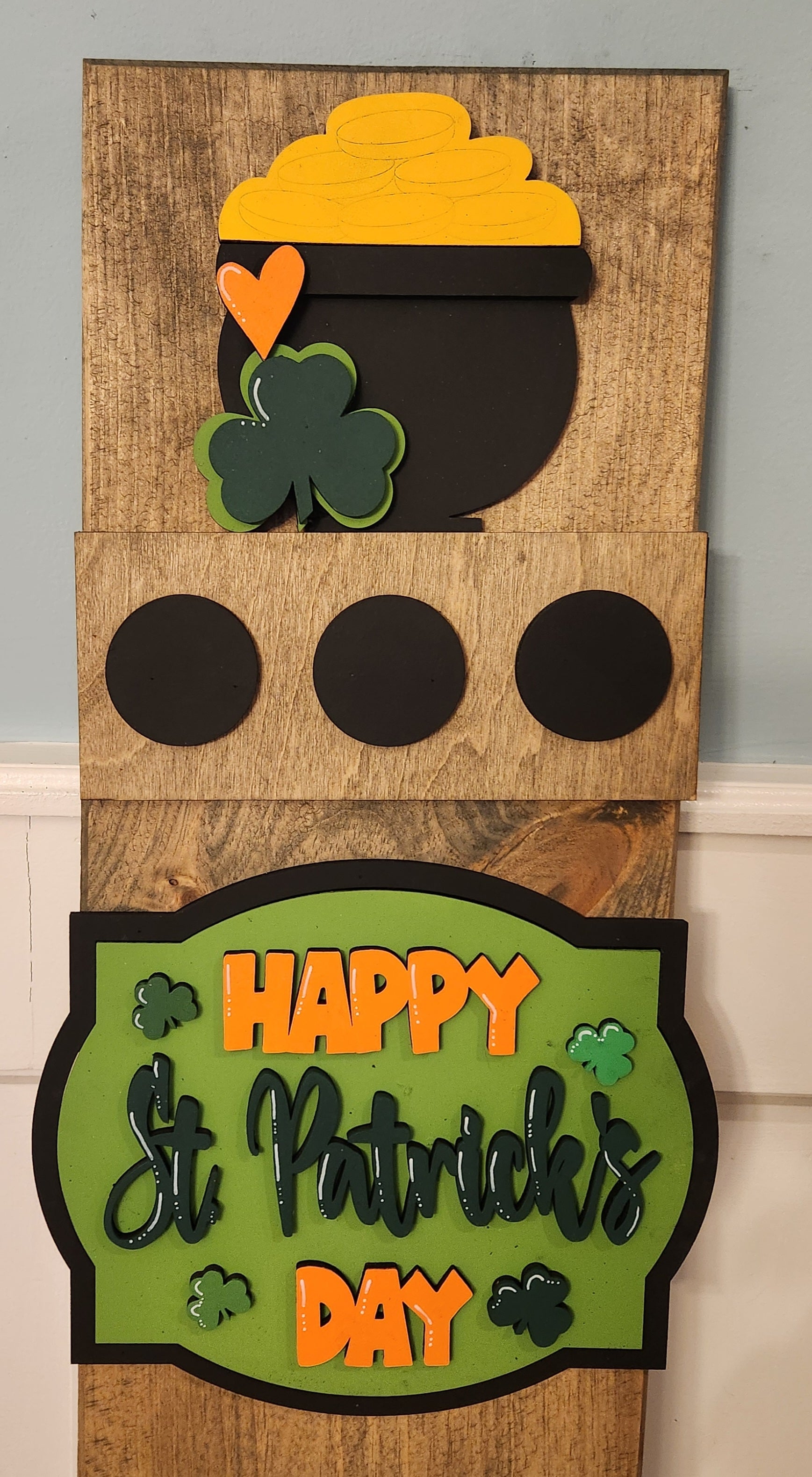 St Patrick's Day Interchangeable Porch Leaner – Custom Wooden Front Porch Sign with Swappable Holiday & Everyday Designs
