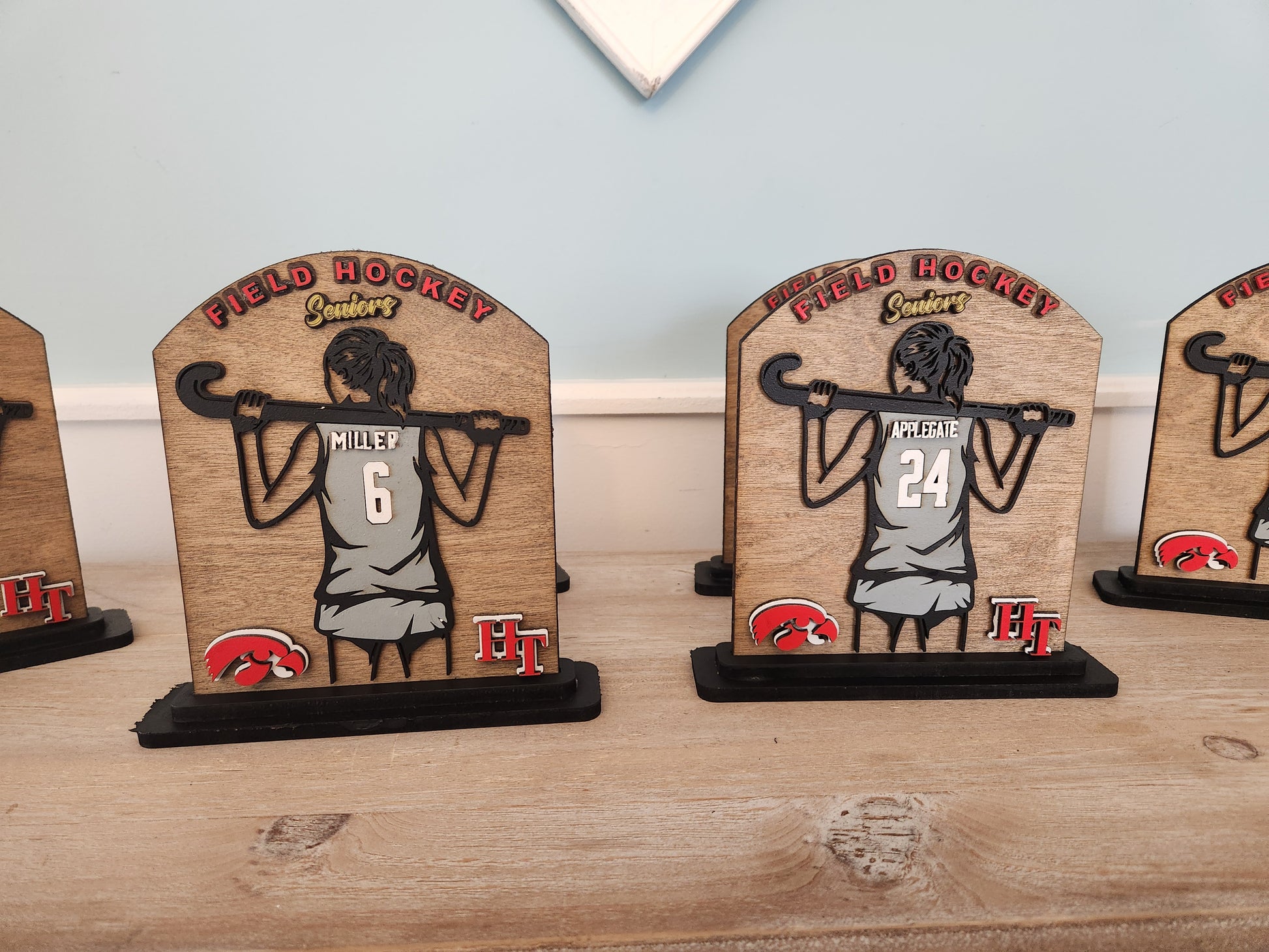 Honor the champions of the field with our Victory Sticks Personalized Field Hockey Trophy & Award. Standing approximately 7 inches tall, this trophy is carefully handcrafted and hand-painted, bringing vibrant detail to each piece. Made from high-quality wood, it features a stunning multi-layered overlay personalized with player names, jersey numbers, and team colors. Perfect for celebrating MVPs, standout players, or end-of-season recognitions, each trophy is a lasting keepsake, blending artistry with team pride. Available in custom finishes to match your team’s spirit, this award is as meaningful as the dedication it celebrates.