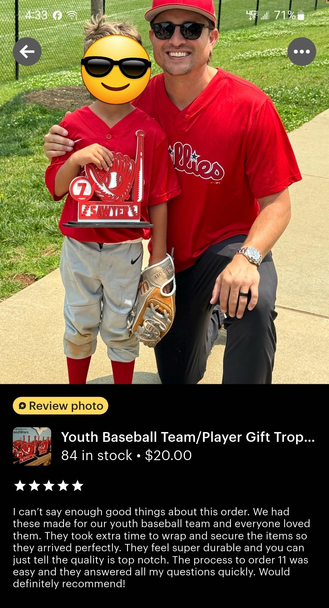 Youth Baseball Team/Player Gift Trophy Memorabilia - Base
